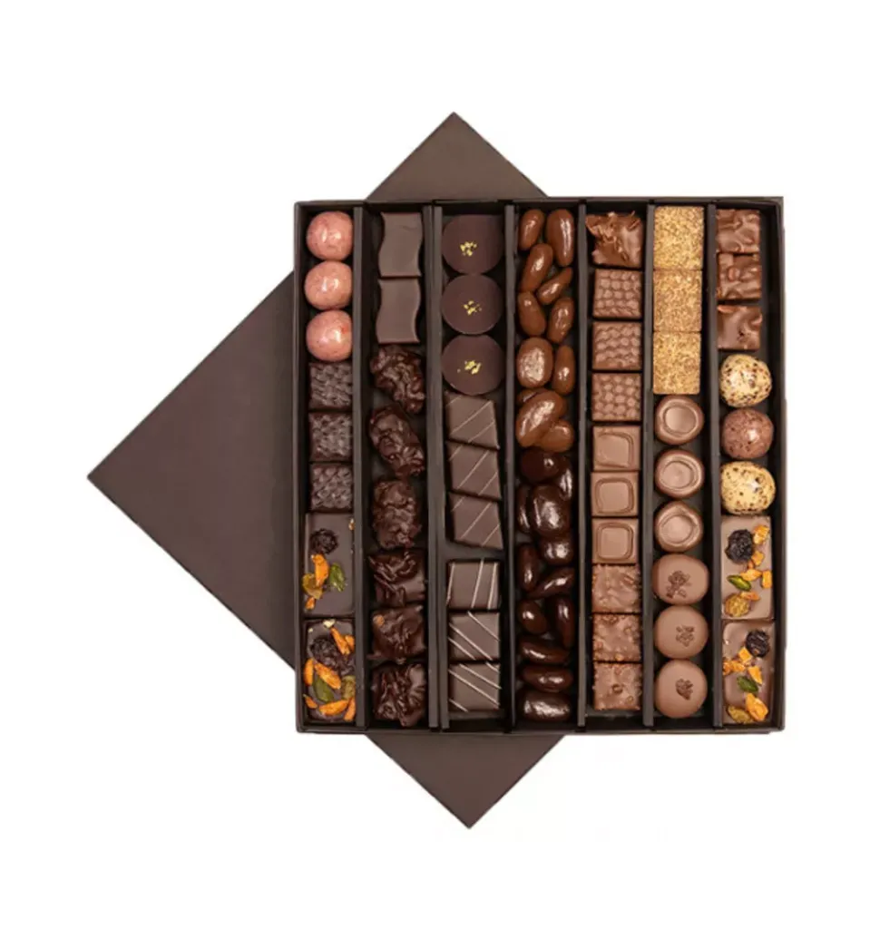 • 1 box of chocolates with 100 pieces of our best pralines, chocolate ganaches and almonds