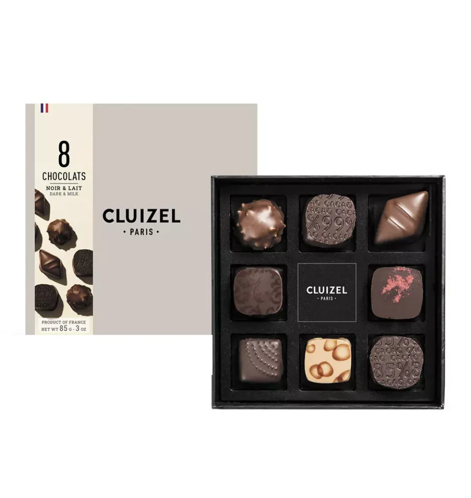 • Box of 8 Cluizel dark and milk chocolates Box of 8 chocolates (85g)